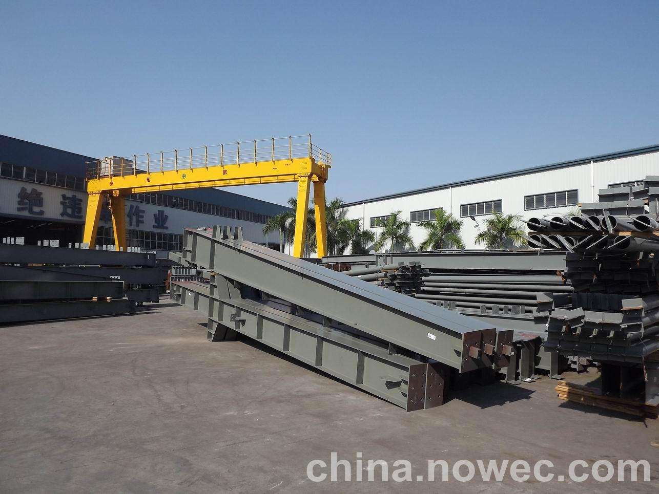 条状单元一般沿长跨方向分割,其宽度约为1~3个网格,其长度为l2或l2/2(l2为短跨跨距)。块状单元一般沿沁阳网架平面纵横向分割成矩形或正方形单元。每个单元的重量以现有起重机能胜任为准。条(块)与条(块)之间可以直接拼装,也可空一网格在高空拼装。由于条(块)状单元是在地面拼装,因而高空作业量较高空散装法大为减少,拼装支架也减少很多,又能充分利用现有起重设备,故较经济。这种安装方法适用于分割后网架的钢度和受力状况改变较小的各类中小型网架,如两向正交正放四角锥、正放抽空四角锥等网架。